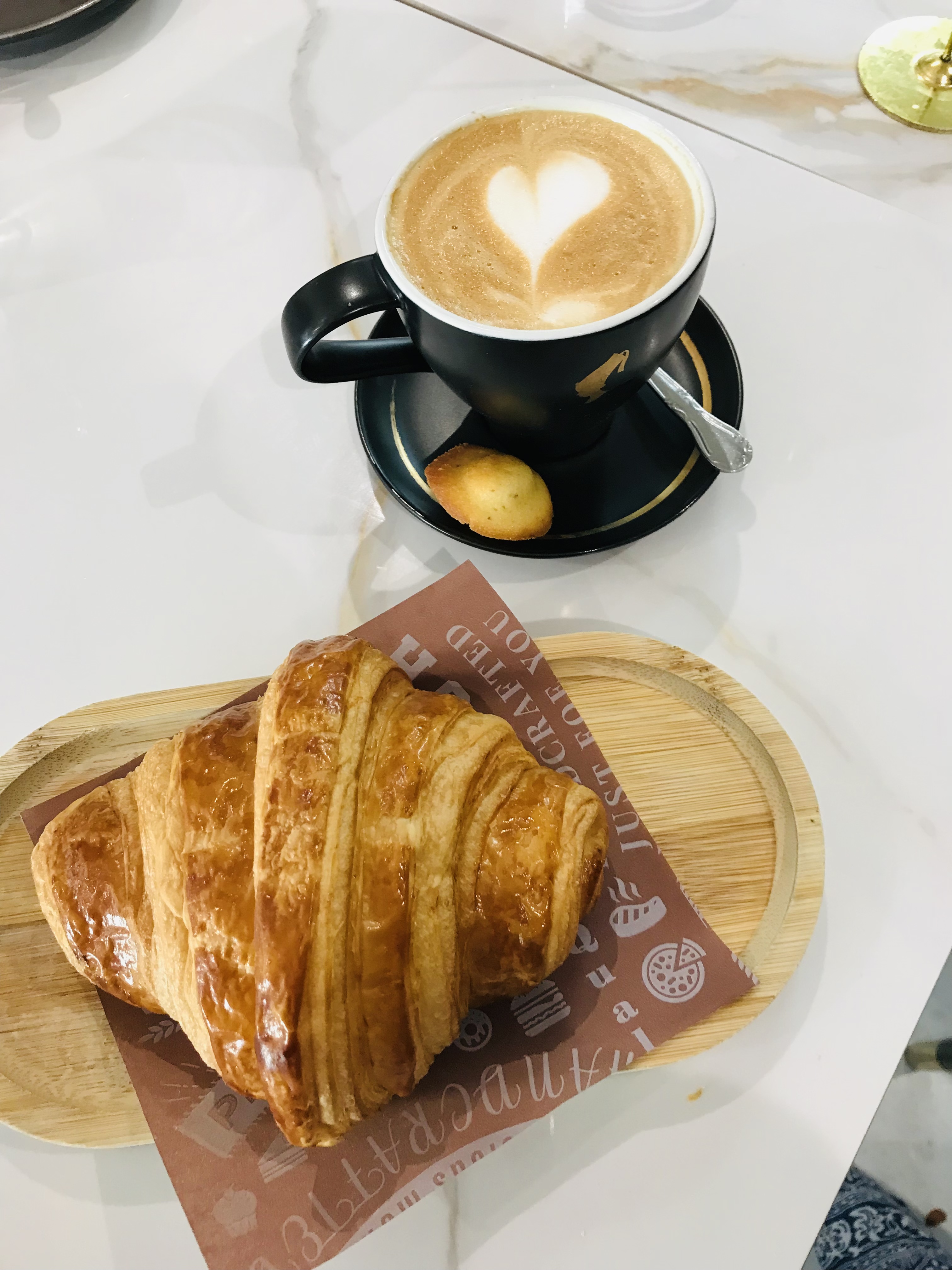 Then, you go and get a croissant and a late and stuff your face with it. Notice something different in this post? The absence of my picture is evident. The hair and face are moody, so no good pictures to share today. Losing is not an easy thing.