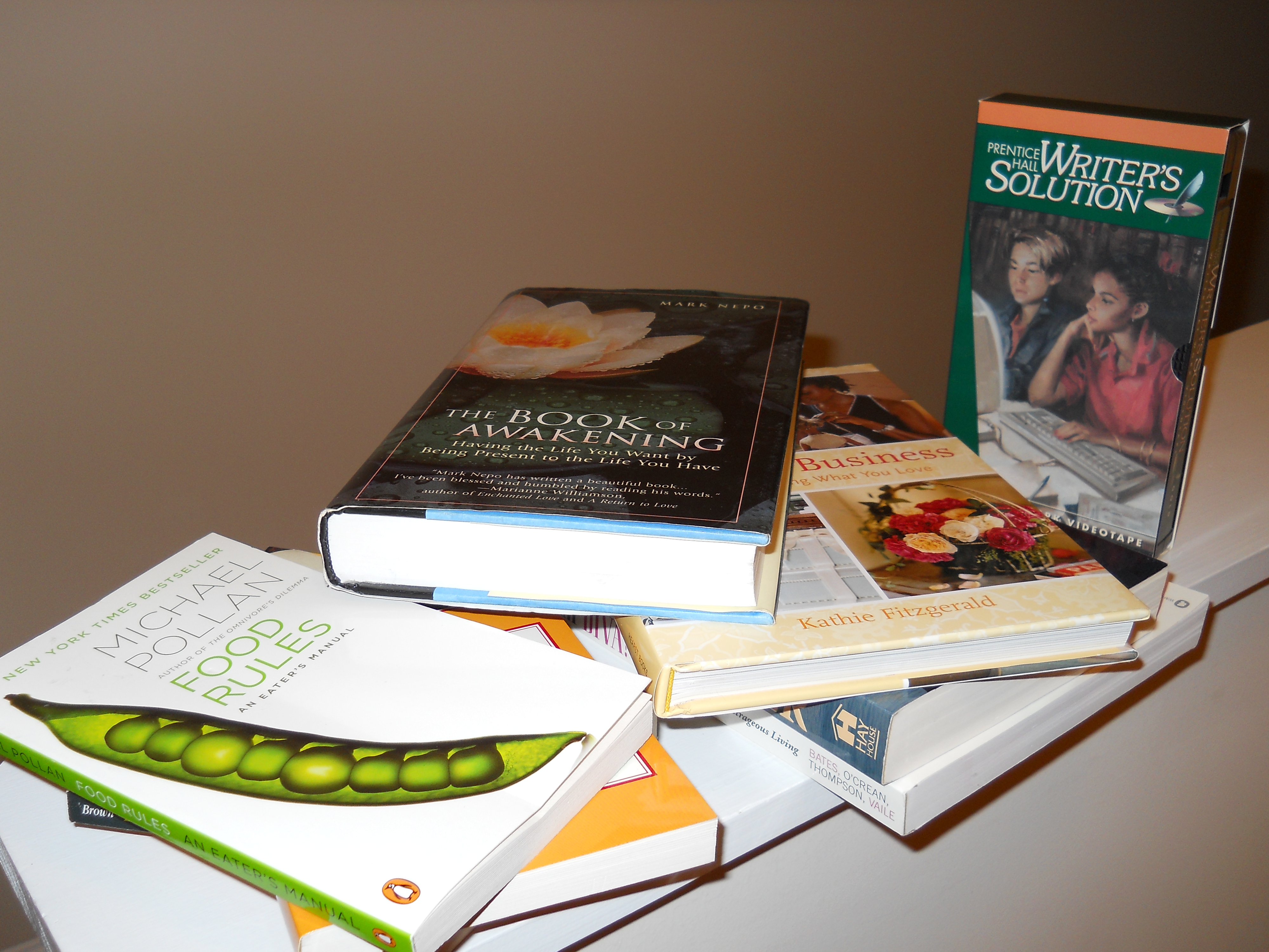 Would you believe that all these books only cost me $10.00, or I could have a supermarket paper bag full of books for $12.00.  I just didn’t want to be greedy.  The paperback on the foreground costs $9.++ at the big discount store.  So it was like buying one paperback and getting all the other books for free.  Noticed I got a video on writing?  Hopefully it will help me to improve the way of expressing myself.  There is always room for improvement on any area in life.
