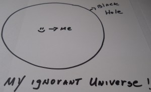 Going back to the newspaper, there was an article about the mysteries of black holes. I am always referring to black holes when something disappears and I don’t have the foggiest idea of where it is. Definition of black holes is somewhat as follows; they are the most powerful force in the universe. Not my ignorant universe, but yours and mine. Nothing can escape it because I guess any attempt to do so will result in the pulverization of whatever it is that tries to leave such a place.
