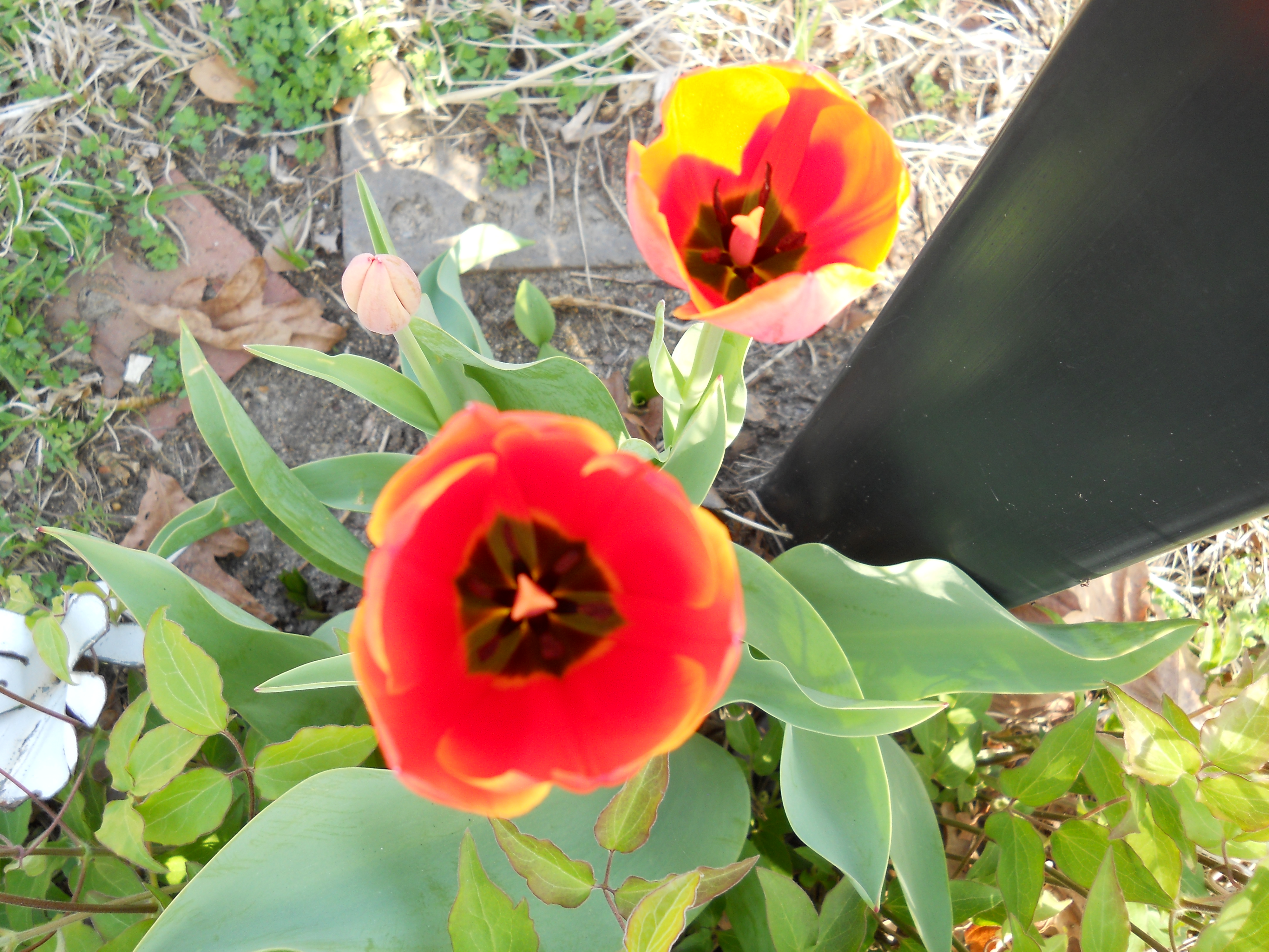 These two tulips in all their splendor were waving at us this morning.  The color just takes your breath away.