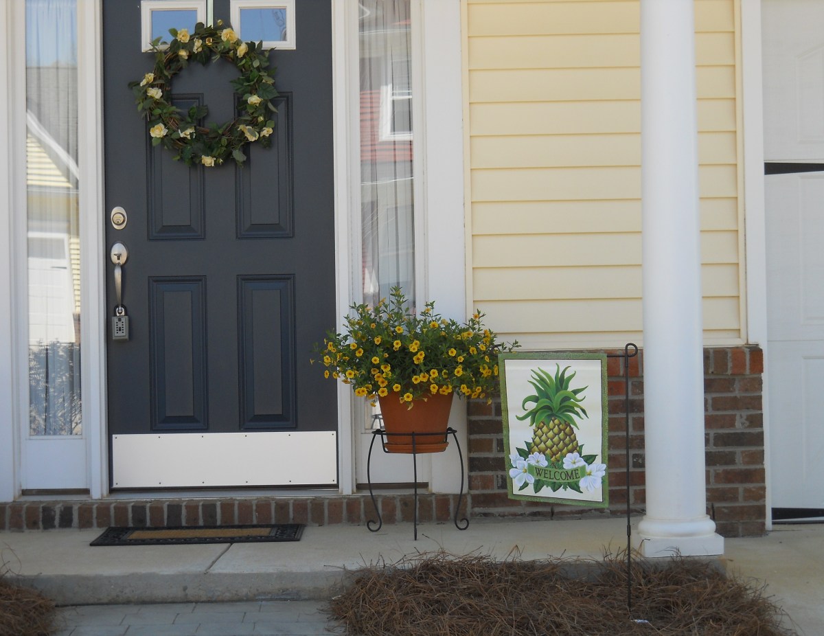 Somewhere in the Bible it says…Ask and you shall receive, seek and you shall find, and knock and the door will be opened. Have you ever put these words to the test? I have. I have been in the search for a small garden flag with a pineapple on it, because it is the symbol of southern hospitality. I don’t want to extend hospitality to anyone looking at my house, I want them to BUY the house. But I have to be subtle. Welcome as it says on the flag should get them in the house and maybe if I tell them that they can keep the little flag, the plant and the wreath on the door, this may entice them to buy the whole house. Let’s hope this cheap just created psychology of mine will work.