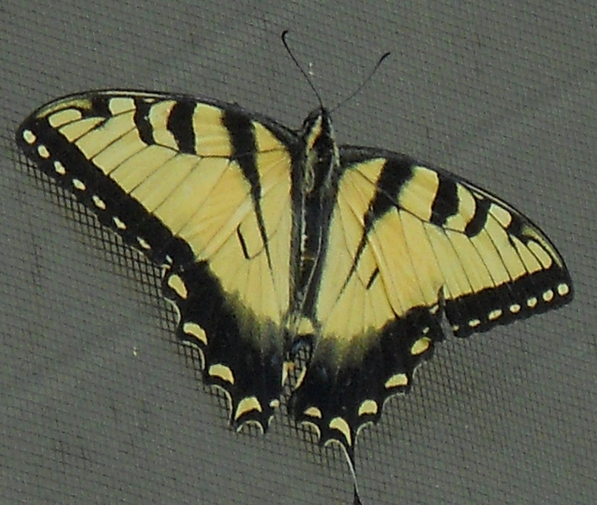 This morning while drying my breakfast dishes, I looked outside to my beautiful landscape, and there she was, a beautiful Tiger Swallowtail (Papilio Glaucas) Butterfly.  Immediately I searched for my camera and took a few pictures.  Had to go out to capture this image.