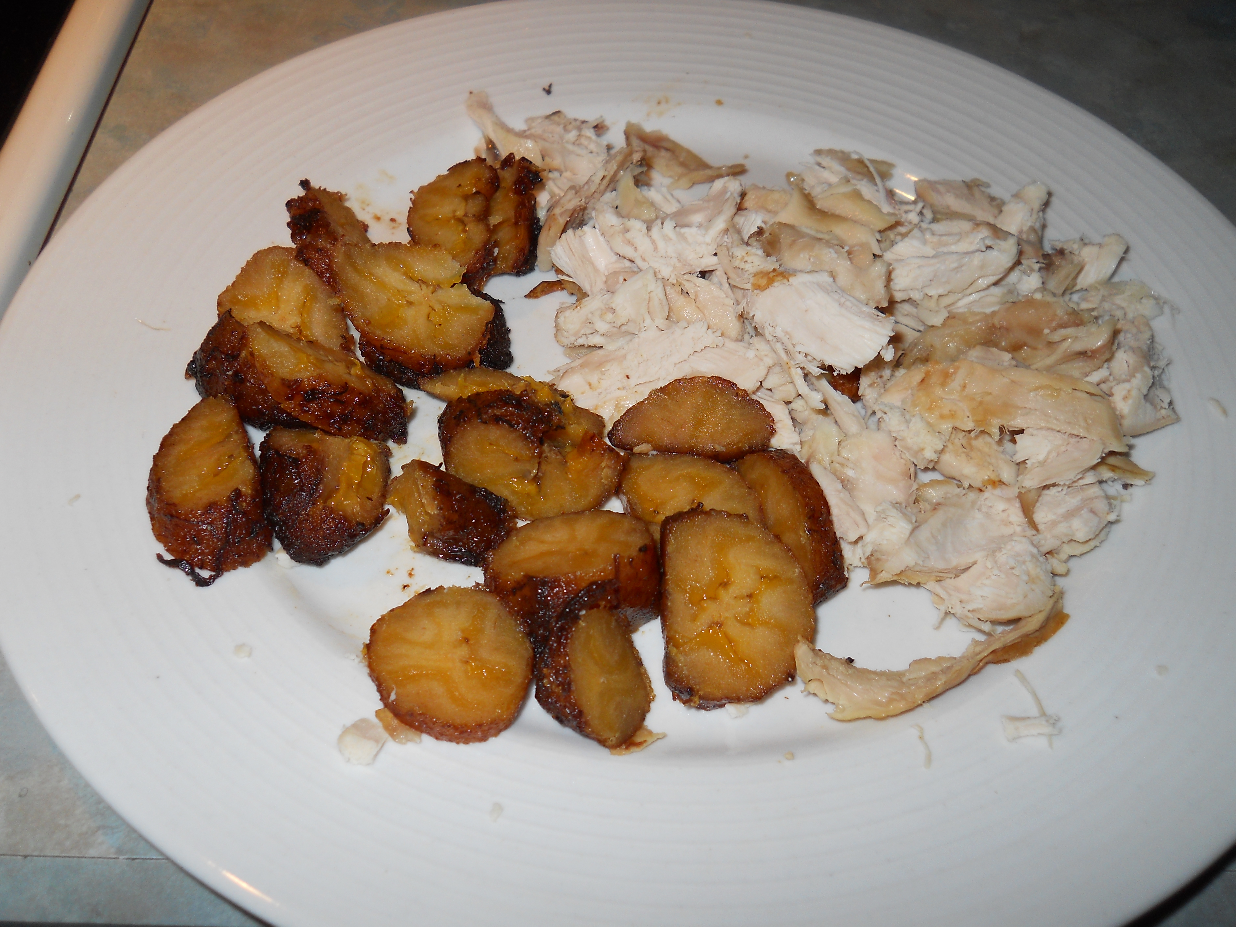This was my dinner today, Monday. Chicken breast and fried ripe plantains. I couldn’t believe it when I saw them at the deli counter of my now favorite supermarket. I could have these plantains daily, twice a day if possible. I am getting closer and closer to all that Caribbean food I so love, but that will make me look like the people on my tv. Have to watch it.