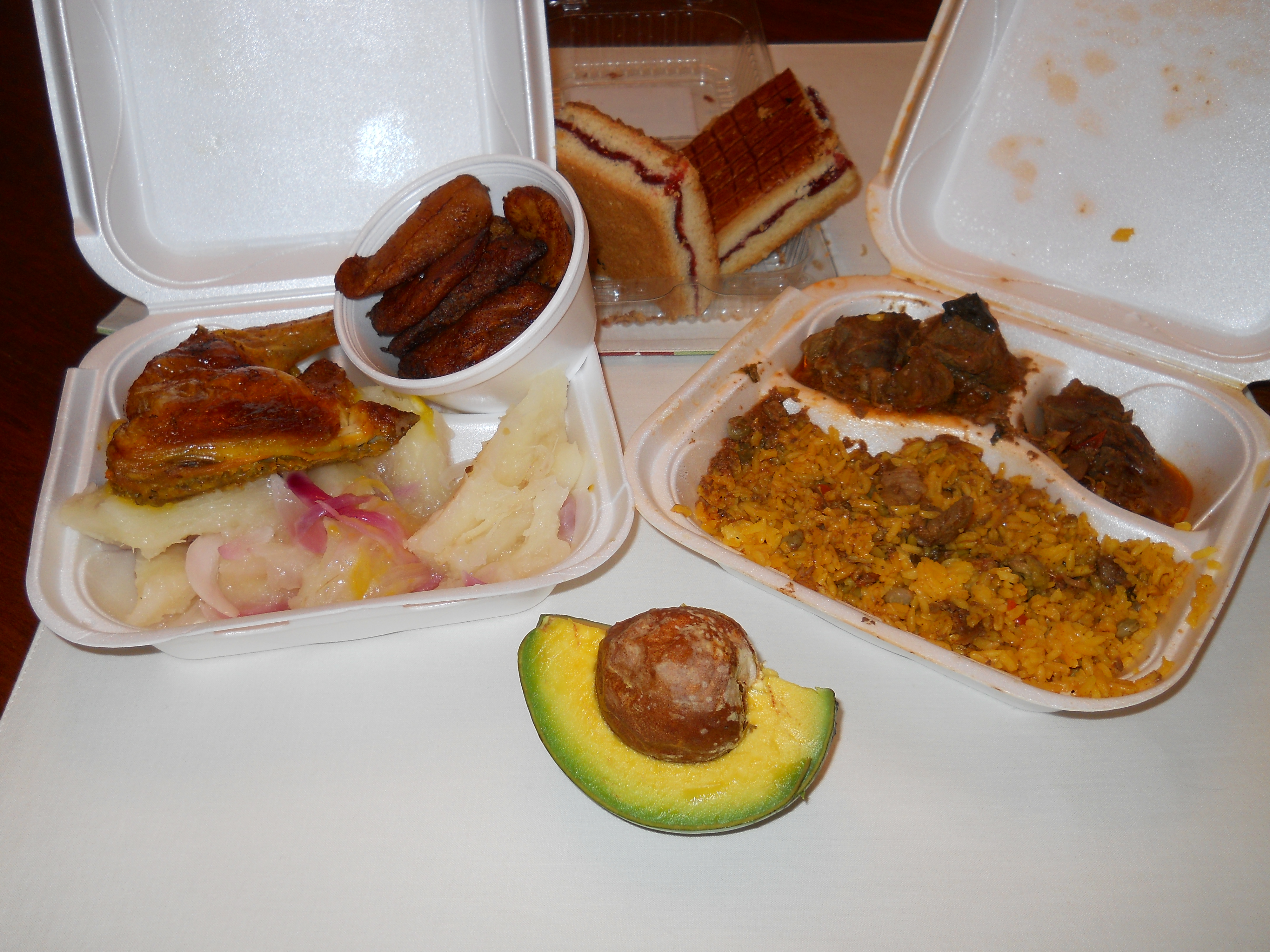 Someone had told me about this supermarket that caters mainly to the ever-growing Hispanic population in this area, but also they have a deli that really numbs your brain in trying to decide what are you going to have to eat. Showing are the arroz con guandules, carne guisada, yuca encebollada, pollo horneado, platanos maduros y dulce de guayaba. In same order, rice with pigeon peas, stewed beef, yuca is a tuber and it was prepared with onions; chicken rotiserie, and of course, ripe plantains. Dessert was a form of cake mixture with guava paste. I forgot to take a photo of the “tres leches, ” a dessert made with three different kinds of milk, one of them being condensed milk. Sweet, but not overwhelmingly sweet. Just perfecto!