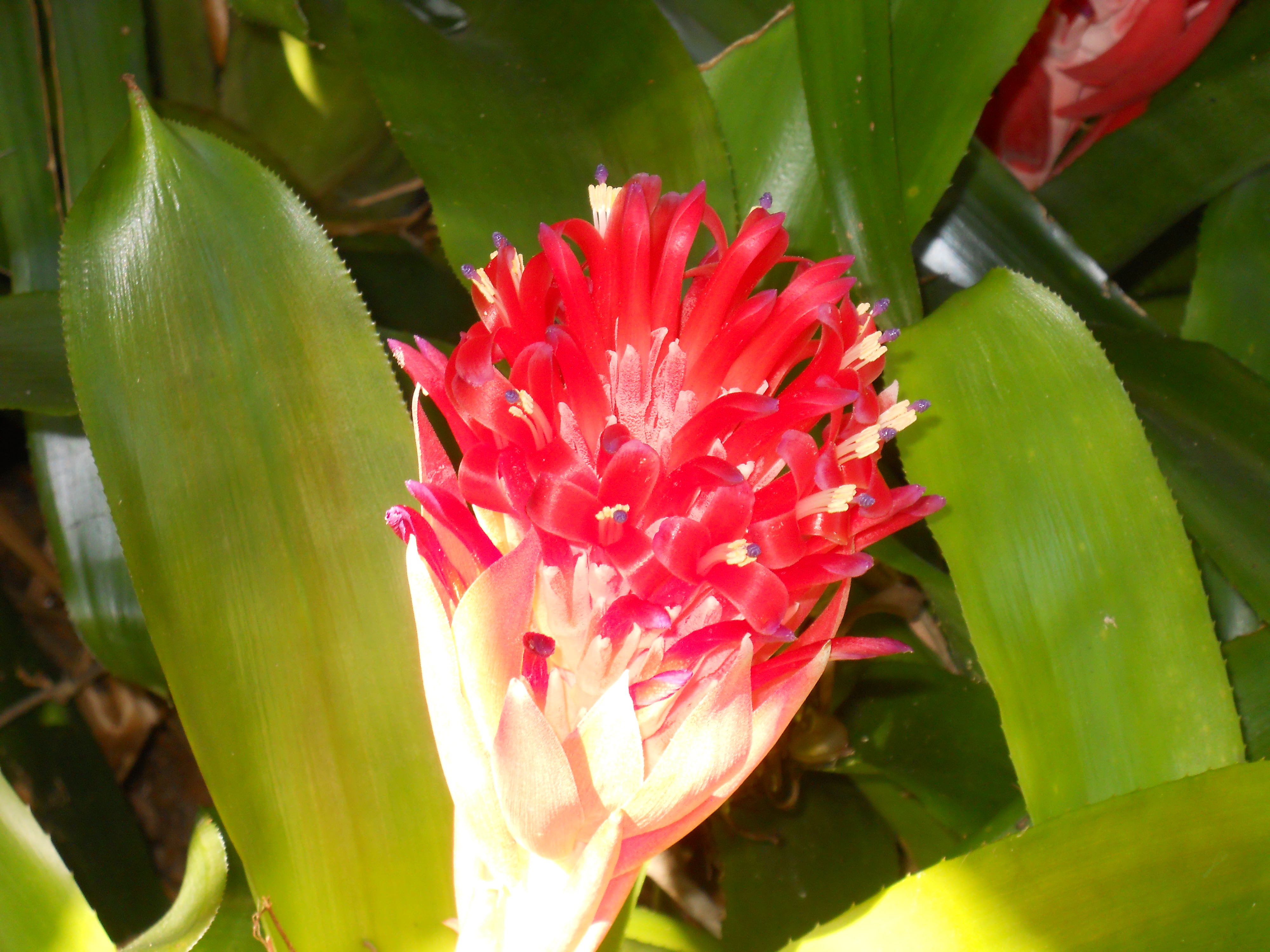 1. We have a lot of those bromiliads (misspelled). They are pretty year around and and can be split and transplanted.