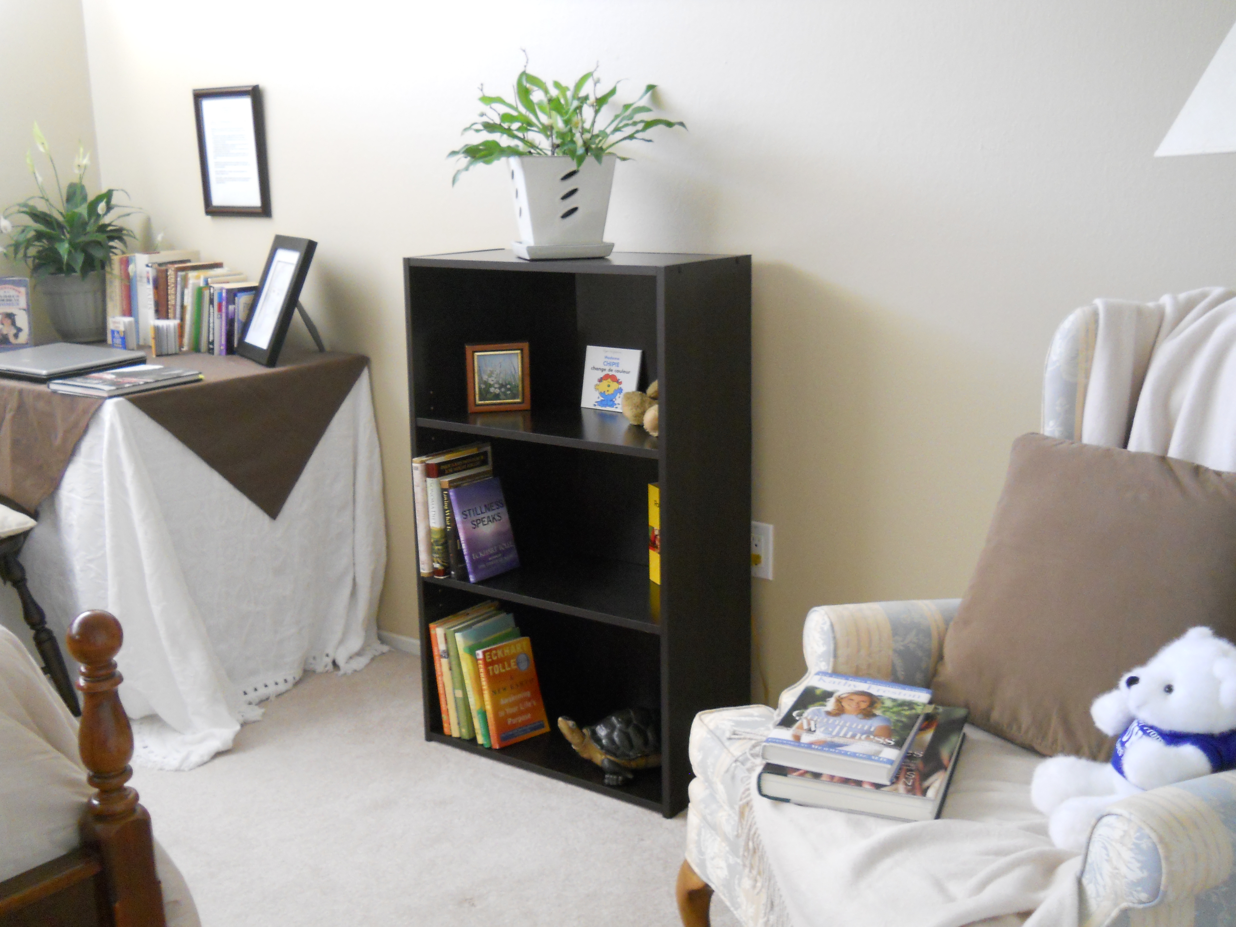 But…I wanted a small bookcase in my bedroom, and of course, inexpensive also.  $16 plus tax, but the best part is…it is made in the U.S.A.!!!!!!  I was searching for an old little bookcase, but it never showed up into my life, so this is it.