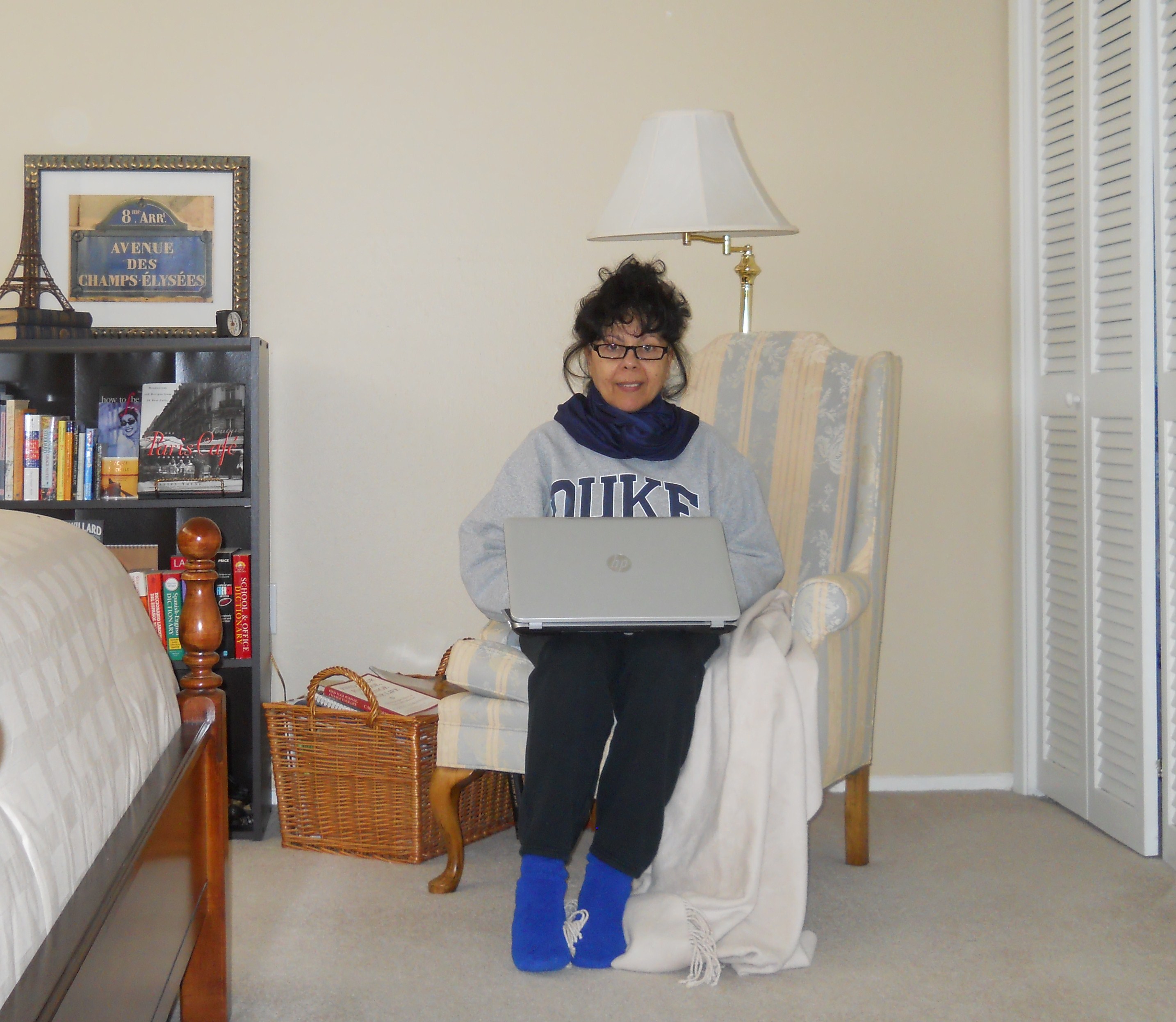Had to share. Of course, the picture is a selfie taken a few minutes ago, while the heat is on and I am freezing in my apartment. Glass of water is in the kitchen, because I couldn’t find a table to put it next to the chair. But hopefully you catch the drift.