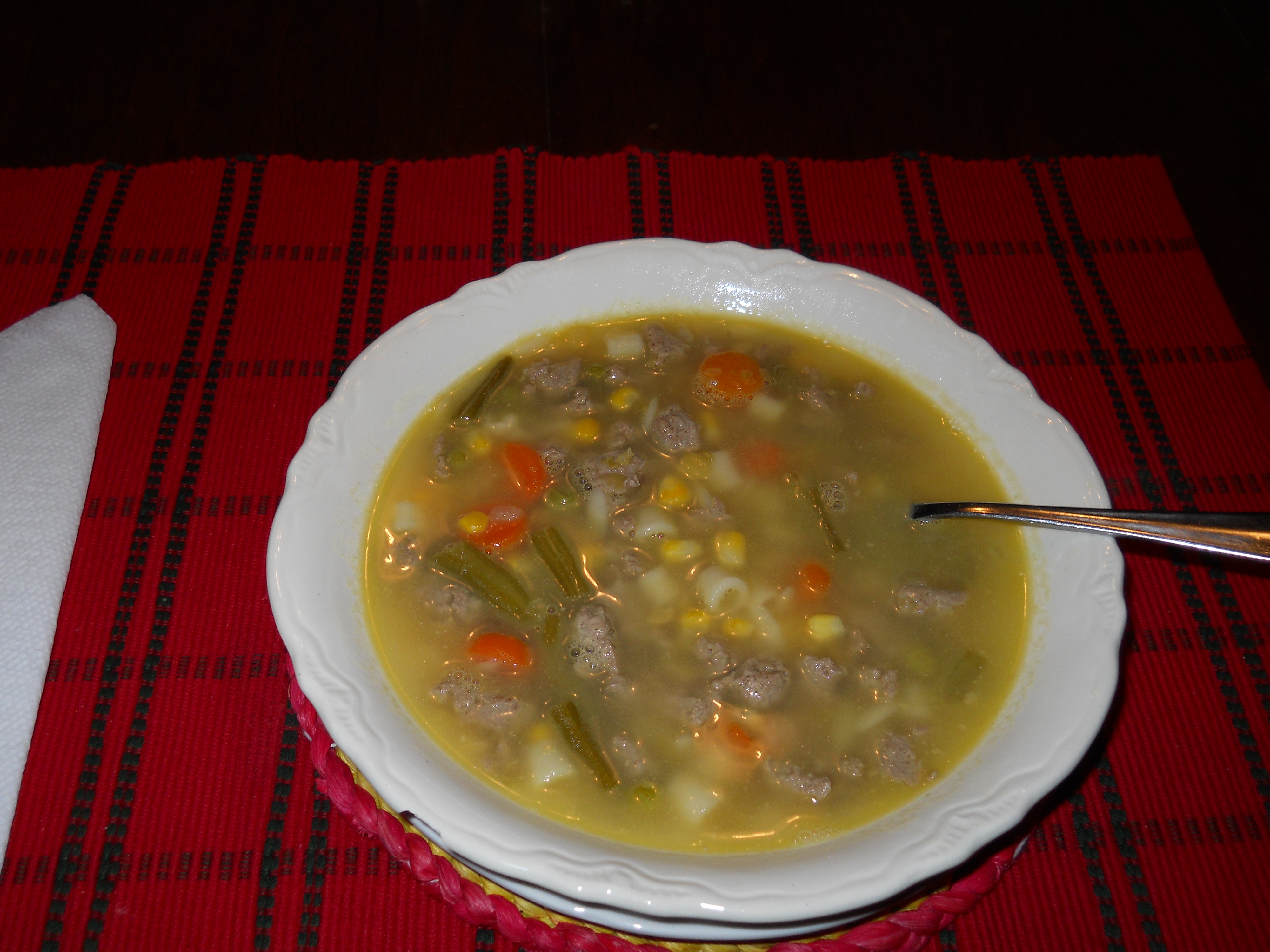 Going back to the soup. It takes about one hour and you just brown the turkey (85/15 grounded) with olive oil (extra v), then add seven cups of water, bring to a boil, add the mix already prepared in an envelope, and let it simmer for one hour. I added some veggies I had left from last night’s dinner (fresh pasta from my angelic neighbors) and just waited for my warm and magic brew. It hit my cold self just right.