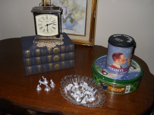 P.S. Yes, I know, the plate is missing a small piece, but I cannot bear to part with this one. Only have three left and I bought them in an estate sale in Florida long ago. The soup tastes better in these plates. The tin with butter cookies in it has not yet been opened. Will have to wait for another worthy major crisis.
